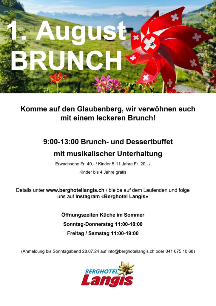 25 Juni 1. August-BRUNCH Gepostet am 09:55h in Allgemein von Berghotel Langis 0 Kommentare 0 Likes Share im Preis inbegriffen sind: 2 warme Getränke und Orangensaftreichhaltiges Brunchbuffetleckeres Dessertbuffet